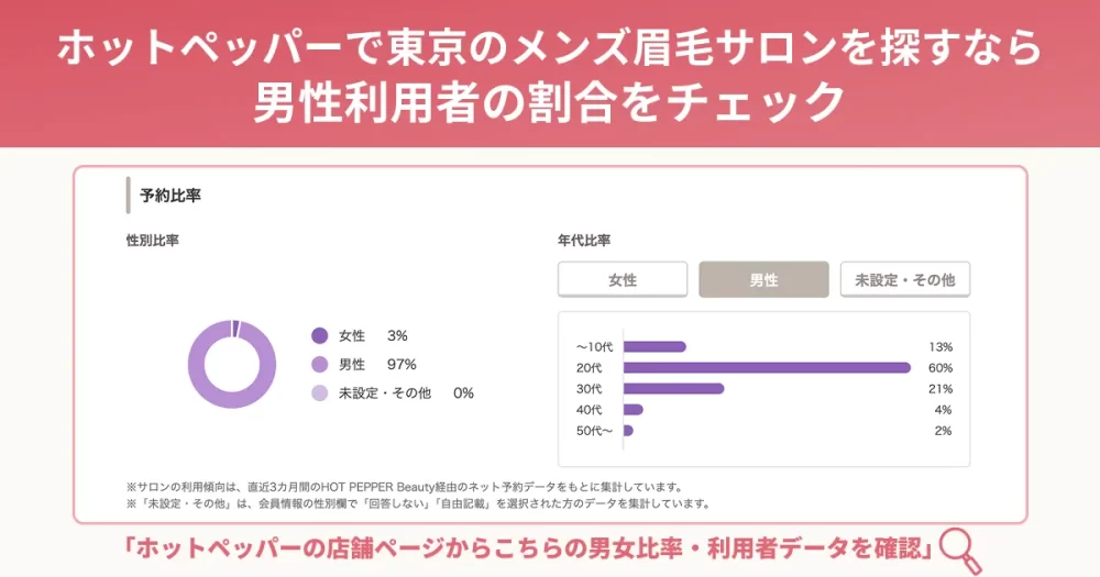 ホットペッパーで東京のメンズ眉毛サロンを探すなら、男性利用者の割合をチェック